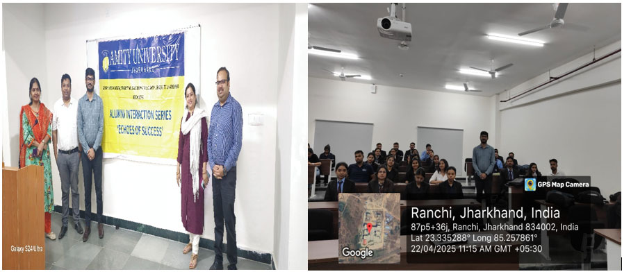 Amity University Jharkhand (AUJ) places great emphasis on fostering strong connections with its alumni through its dedicated alumni association, *AUJAAR* (Amity University Jharkhand Alumni Association Ranchi). The association actively organizes and facilitates various alumni engagement initiatives, strengthening the bond between the institution and its graduates while contributing to the holistic development of current students. These activities include Alumni Meets, Alumni Interaction Series-“Echoes of Success”, social activities, invited lectures in bridge classes and academic support in improving course curriculums.