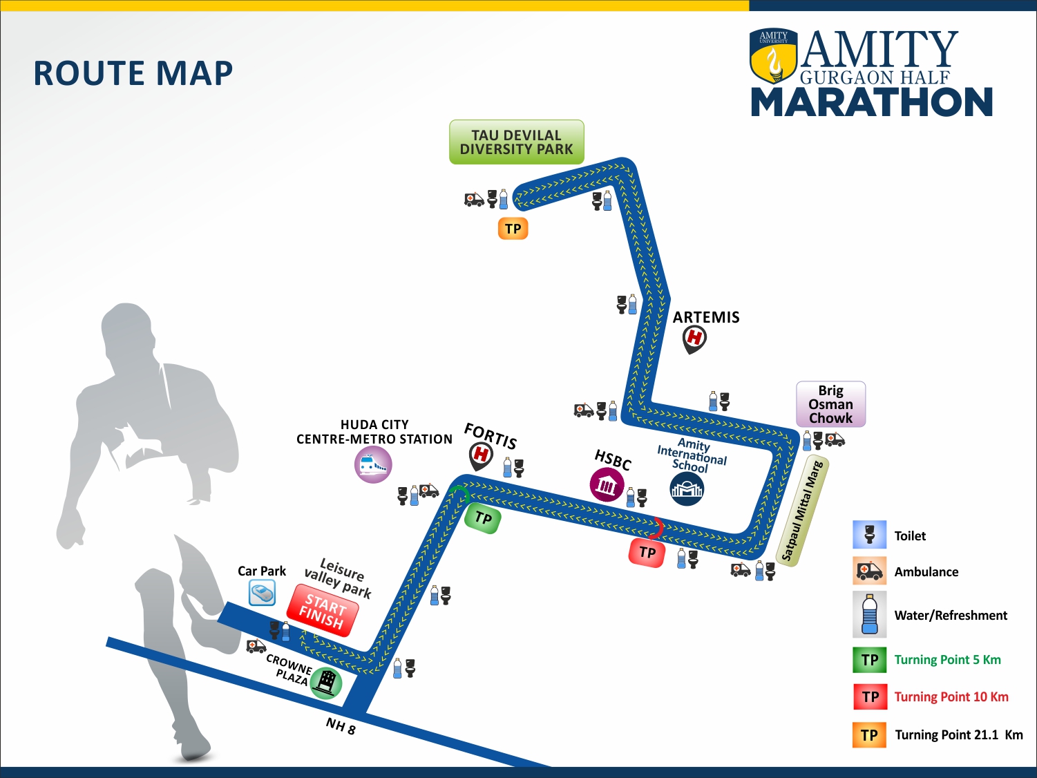 - It is mandatory for a Half Marathon participant to collect his/her running BIB in person from the venue. In case of unavoidable circumstances, one representative per person will be allowed to collect only one BIB.