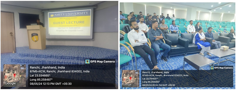 Amity University Jharkhand hosted an inspiring Alumni Interaction Session with Mr. Rishab Jain, an MBA alumnus and successful entrepreneur currently working with a government department. Addressing the current MBA batches, Mr. Jain shared insights from his journey of transitioning from a management student to an entrepreneur engaged in public sector projects. He spoke about the importance of strategic planning, innovation, and ethical leadership in business, especially when collaborating with government initiatives. His practical advice on entrepreneurship, start-up challenges, and career development resonated deeply with students. The session concluded with an engaging Q&A, leaving students motivated to explore dynamic and impactful career paths.